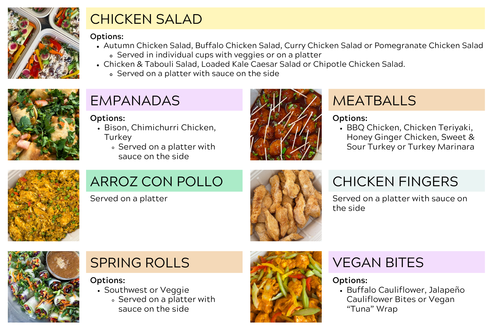 Menu items, prices and availability are subject to change. 48 hours advanced notice is required for all catering orders. Consuming raw or undercooked meat, poultry or eggs may increase your risk of foodborne illness. Please inform us of any allergies or dietary restrictions upon ordering.”