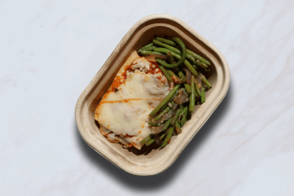 chicken breast, pasta, spinach, tomato paste, onion, vegetables (varies), mozzarella, garlic, oregano, basil, olive oil, black pepper
