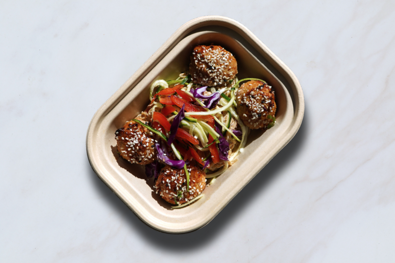 ground chicken, bell pepper, scallion, cabbage, kelp noodles, almond butter, ginger, honey, lemon, tamari, paprika, garlic, sesame seeds